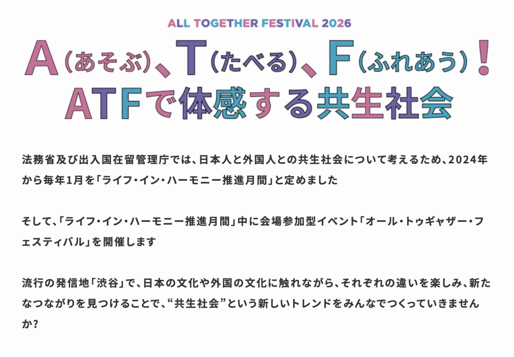 渋谷×多文化体験で世界と繋がろう!オール・トゥギャザー・フェスティバル2026