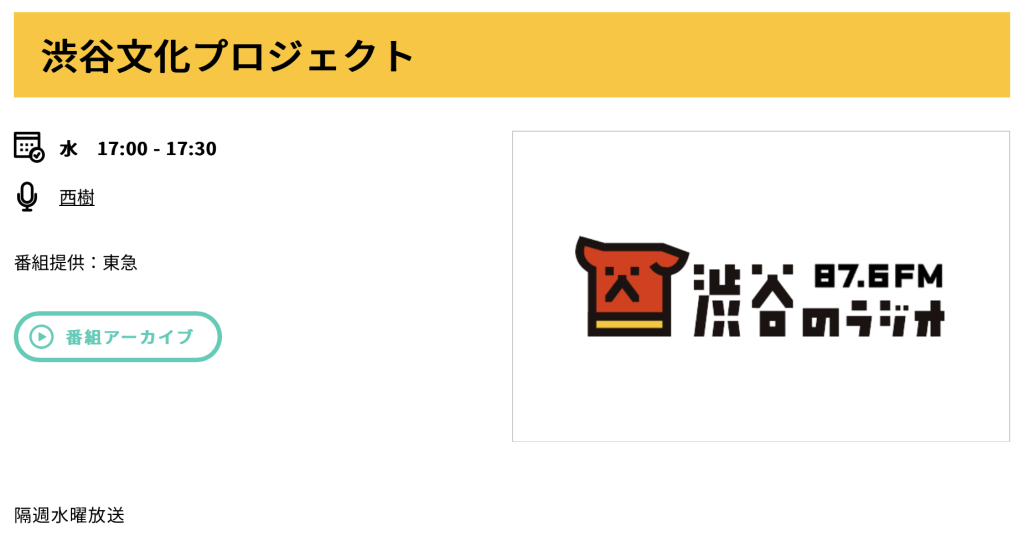 渋谷のラジオ87.6FM「渋谷文化プロジェクト」